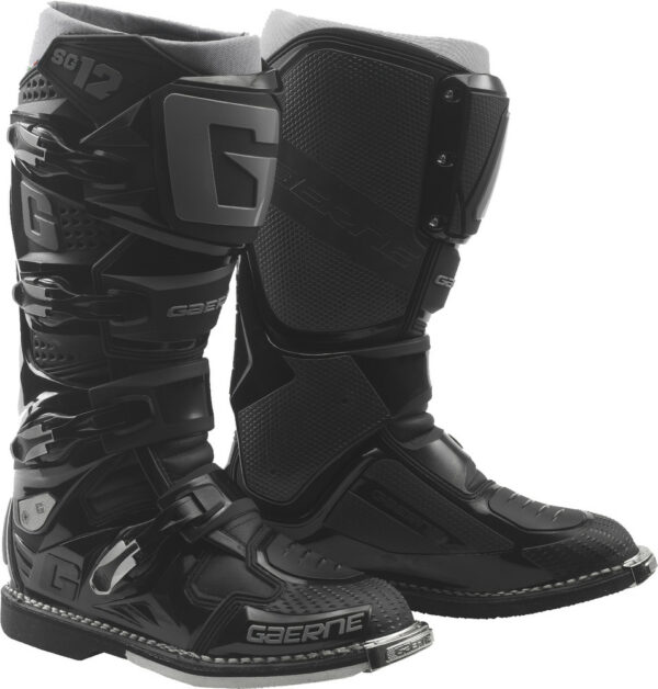 Choices create champions, but support is what keeps them at the top, which is why the SG-12 boot is the choice for riders who aspire to rise above the competition. From box to bike with minimal break-in, Gaerne’s SG-12 boots are made in Italy by practiced hands that step-by-step layer support, security, and comfort into each boot. The premium SG-12 offers a streamlined toe box for precision control, a dual-stage pivot system for more aggressive riders, an anti-shock composite sole for better connection to the pegs, slimline inner grip guard panels for better control and grip of the bike, memory foam interior for a customized fit, and an adjustable shin plate for more room around the calves. Our buckle system makes it easy to get in and get going, so a rider can focus less on gear and more on the ride.
